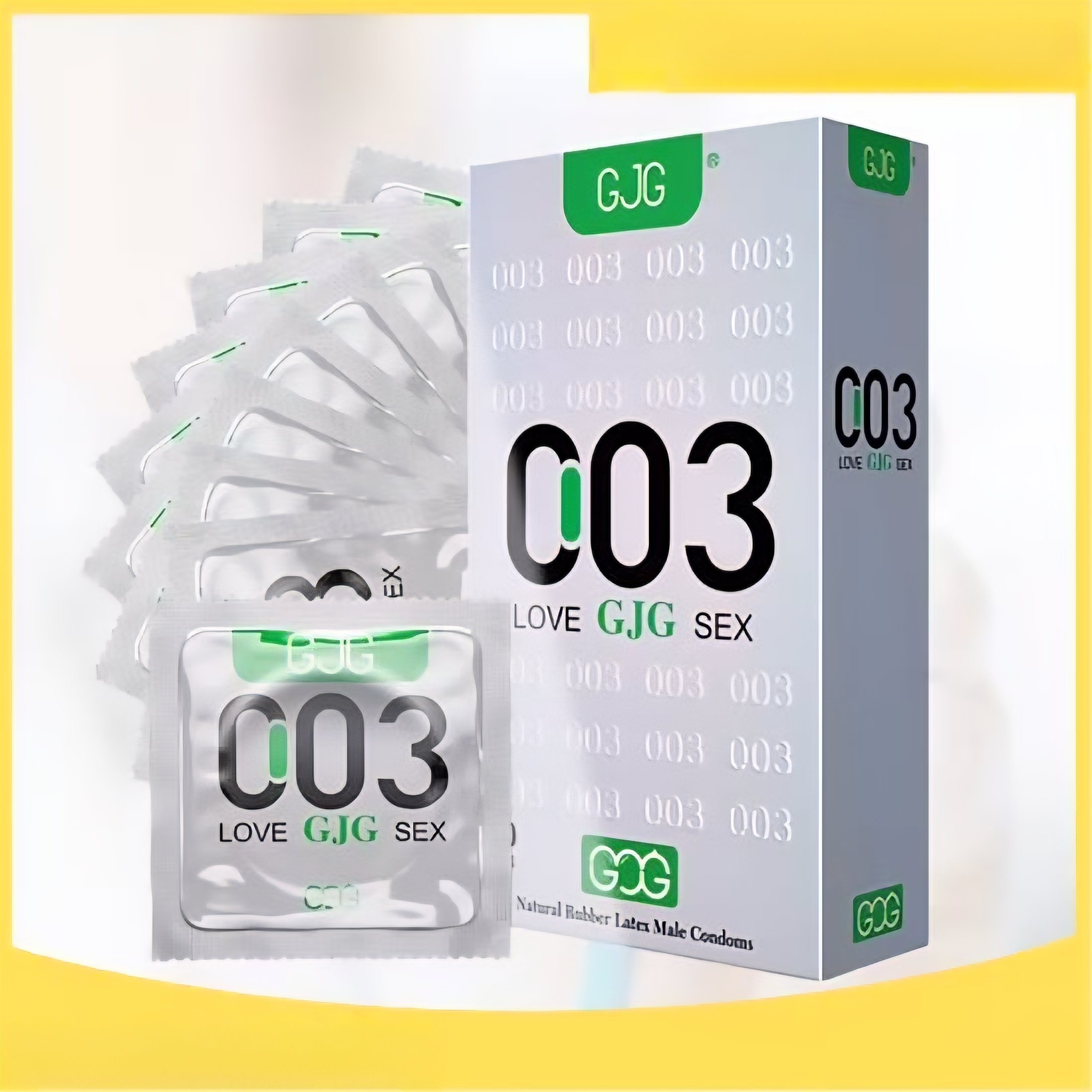 Material: Condones de látex natural con paredes delgadas, con abertura para la bolsa de almacenamiento de esperma (o sin bolsa de almacenamiento de esperma) con bordes laminados, generalmente con aceite agregado (aceite de metil silicona) o lubricante soluble en agua (que contiene ácido hialurónico), no contiene espermicida.