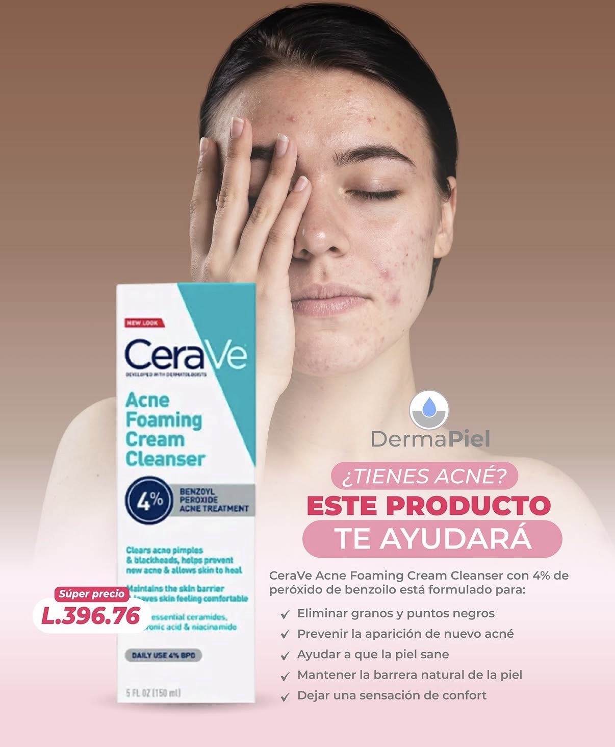Crema espumosa para el acné CeraVe con peróxido de benzoilo al 10% RH40