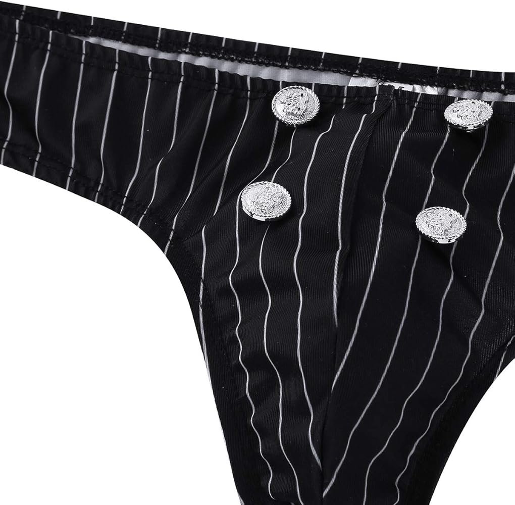 Tanga de tiro bajo con cintura elástica, bolsa frontal con 4 botones, diseño de patrón de rayas