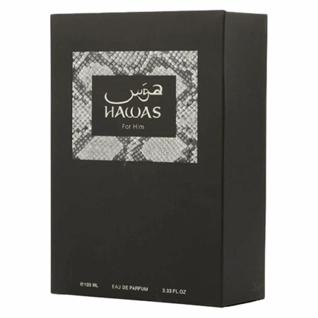 La presentación de este excepcional perfume Rasasi Hawas no se queda atrás. La botella de tono gris claro presenta un tapón envuelto con una pitón, mientras que la textura de pitón en el empaque añade un toque de sensualidad y extravagancia que recuerda a la alta costura. Hawas for Him no solo es una fragancia, sino una declaración de estilo que personifica la esencia moderna y aventurera del hombre que lo lleva.